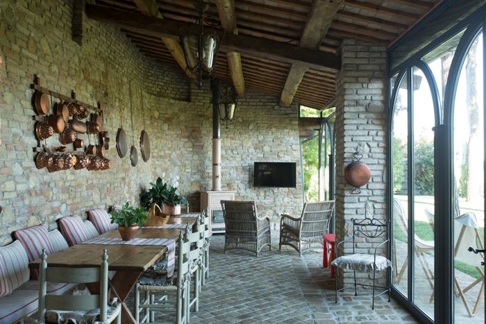 Il restauro e la ristrutturazione di questa villa a Pesaro è partito dal rinforzo delle fondazioni, tramite utilizzo di resine, fino all’aggiunta della scala e di un nuovo solaio, mentre la copertura è stata rimaneggiata posizionandola a nord per una questione termica. Per una questione di tradizioni e continuità invece, il pavimento del piano terra, risalente agli anni ’60, è stato demolito e sostituito con del cotto bicolore antico, anch’esso del 1700, quindi montato senza fughe. Questo cotto è stato reperito da un antiquario ed in seguito pulito e trattato, restituendo alla casa il suo pavimento.